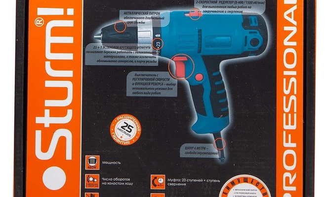 Тип устройства:дрель-шуруповерт, пистолетная, патрон: быстрозажимной.